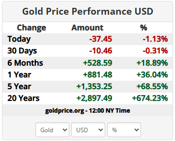 As of the time of writing, gold has gone up 674.23% over the last 20 years (according to goldprice.org), so 674.23% / 20 years = 33.7% per year, but we should remember to factor in the compounding effect, so (1 + 6.7423) ^ (1 / 20) – 1 = 10.8% per year.
